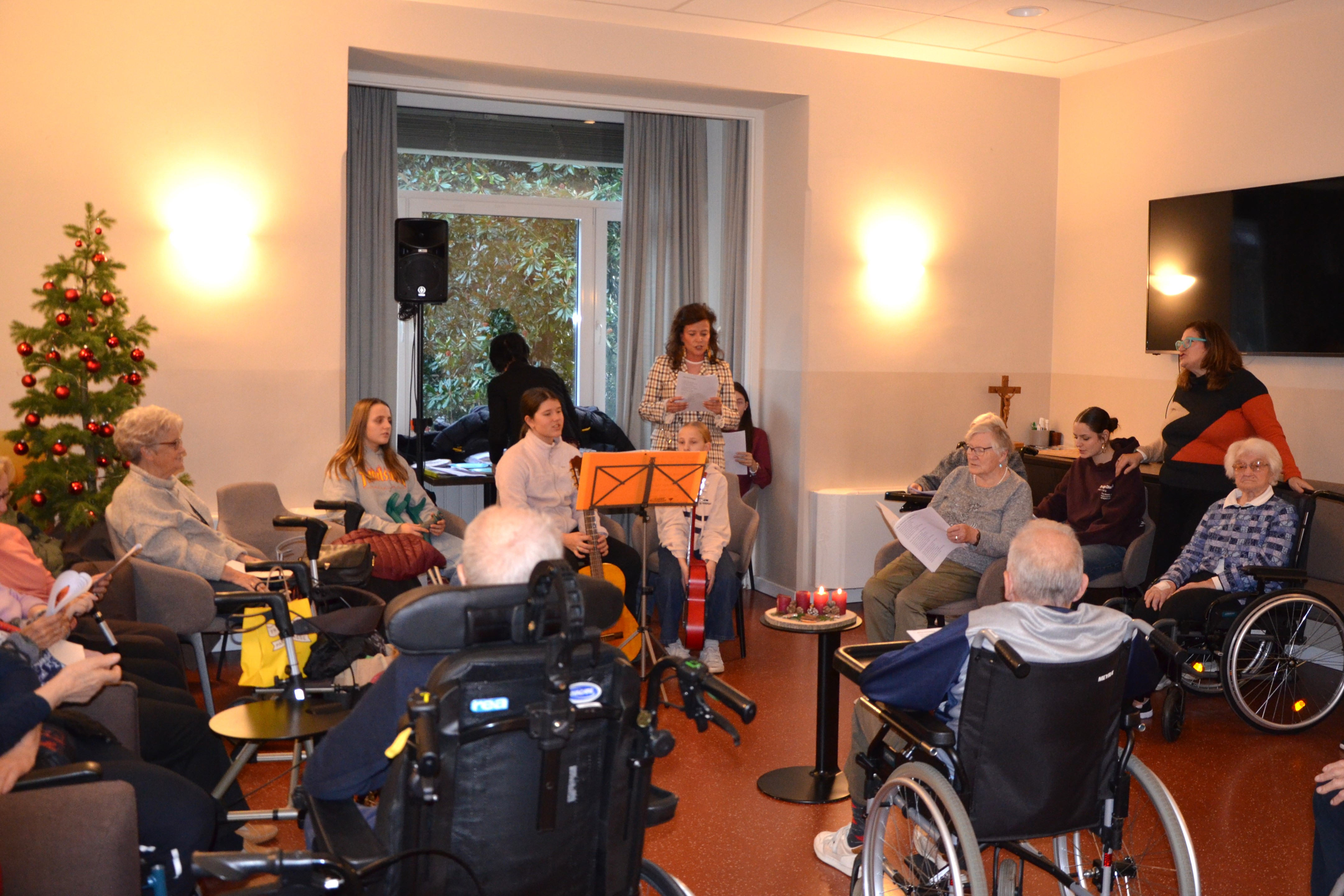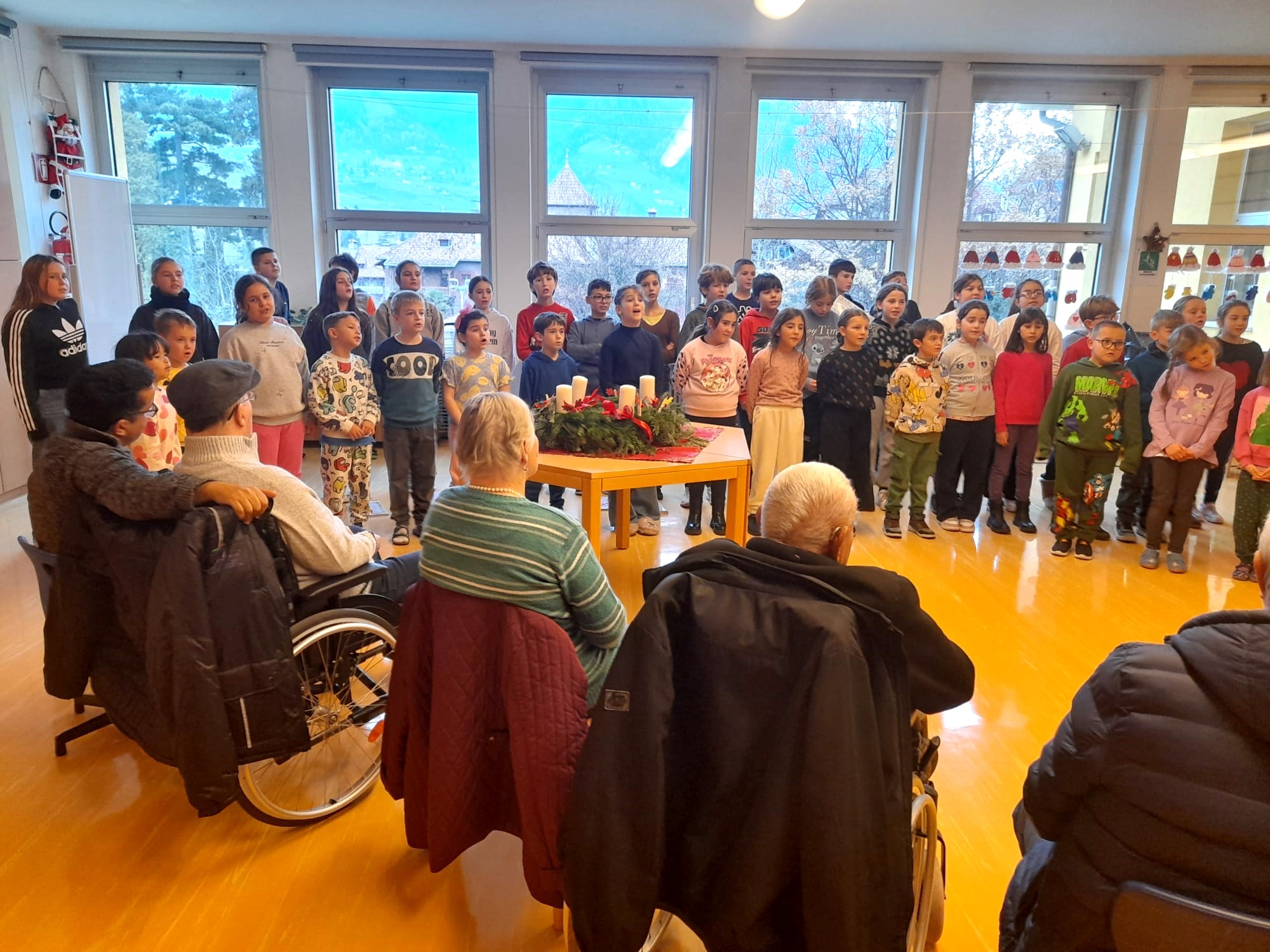 Il 2 dicembre 2025 siamo stati invitati dalle insegnanti della Scuola Elementare De Amicis ad assistere ad un emozionante e gioioso concerto di Natale. Così un gruppo di anziani, accompagnati dal personale dell’animazione e dell’assistenza, ha potuto trascorrere un’oretta spensierata e carica di atmosfera natalizia. Gli alunni della terza, quarta e quinta classe, diretti dal maestro di musica, hanno cantato allegre canzoncine natalizie sia in lingua italiana che in lingua tedesca. I nostri anziani hanno apprezzato molto l’esibizione cantando a loro volta con gli alunni e battendo le mani a ritmo di musica. A fine concerto abbiamo ricevuto un gigantesco biglietto di auguri realizzato appositamente dalle classi che si sono esibite e seguivano calorosi auguri di Buon Natale da entrambi le parti.